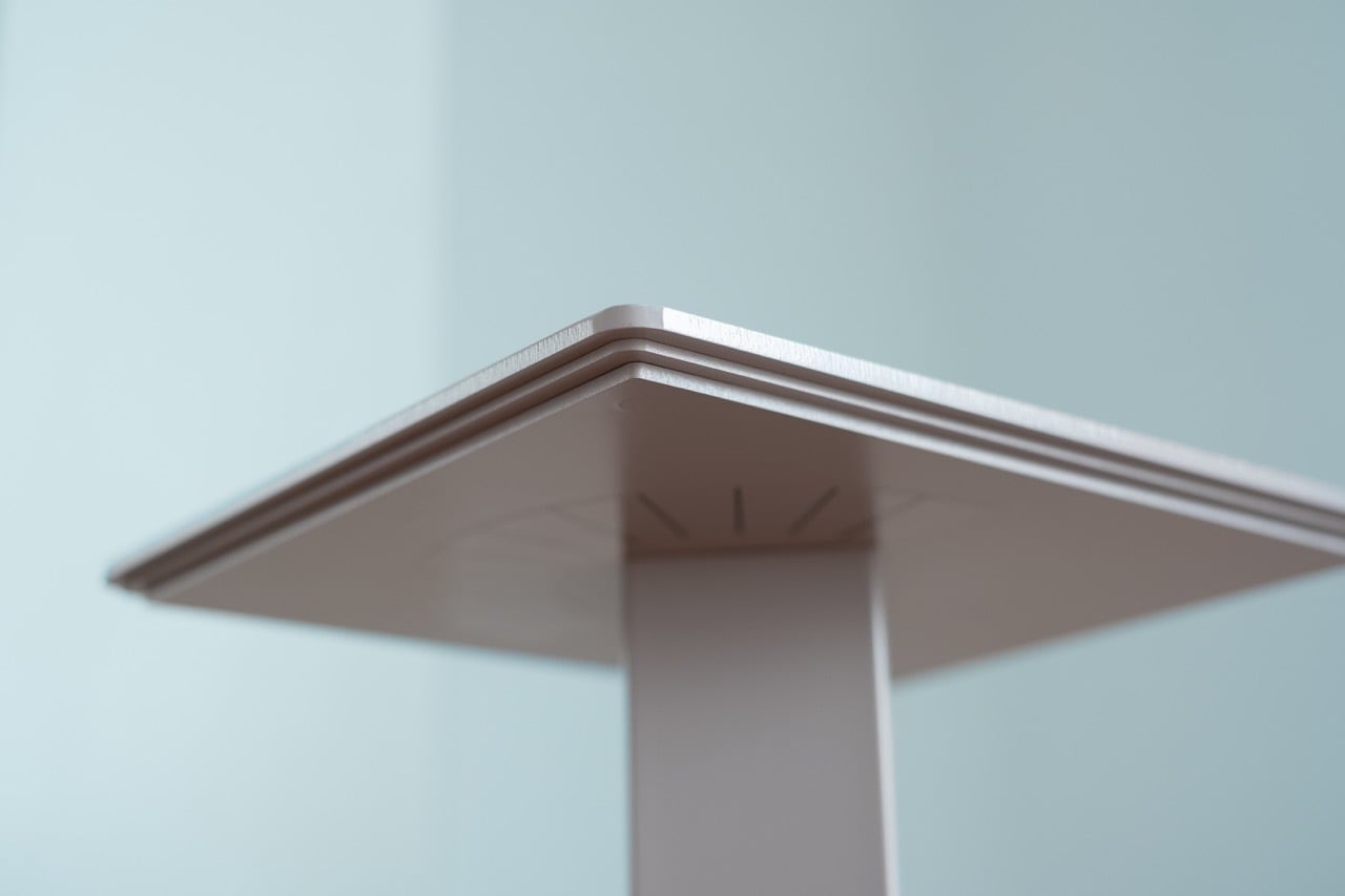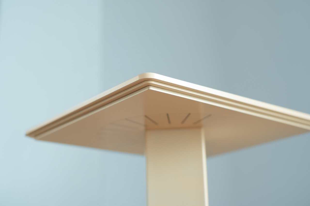 ✔︎従来のMSTP-SシリーズではなかったR処理、ドリス式柱に着想を得た三層段差鉄板天板のヴィンテージライクなデザイン